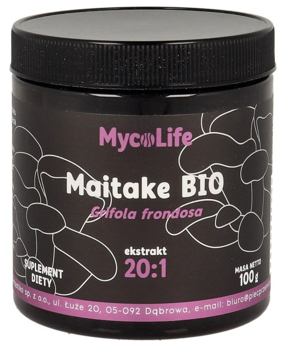 100 % ekologiczny ekstrakt z grzybów Maitake (Grifola Frondosa) standaryzowany na zawartość min. 40 % polisacharydów.